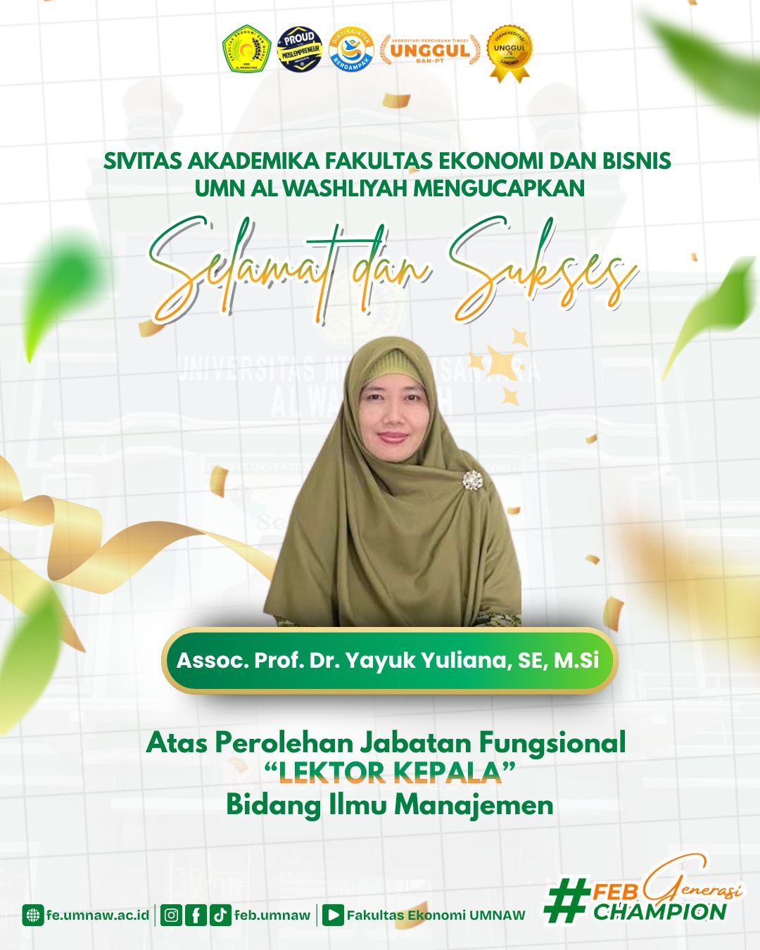 Keluarga Besar Fakultas Ekonomi dan Bisnis Universitas Muslim Nusantara Al-Washliyah dengan penuh rasa syukur dan kebanggaan menyampaikan ucapan selamat dan...