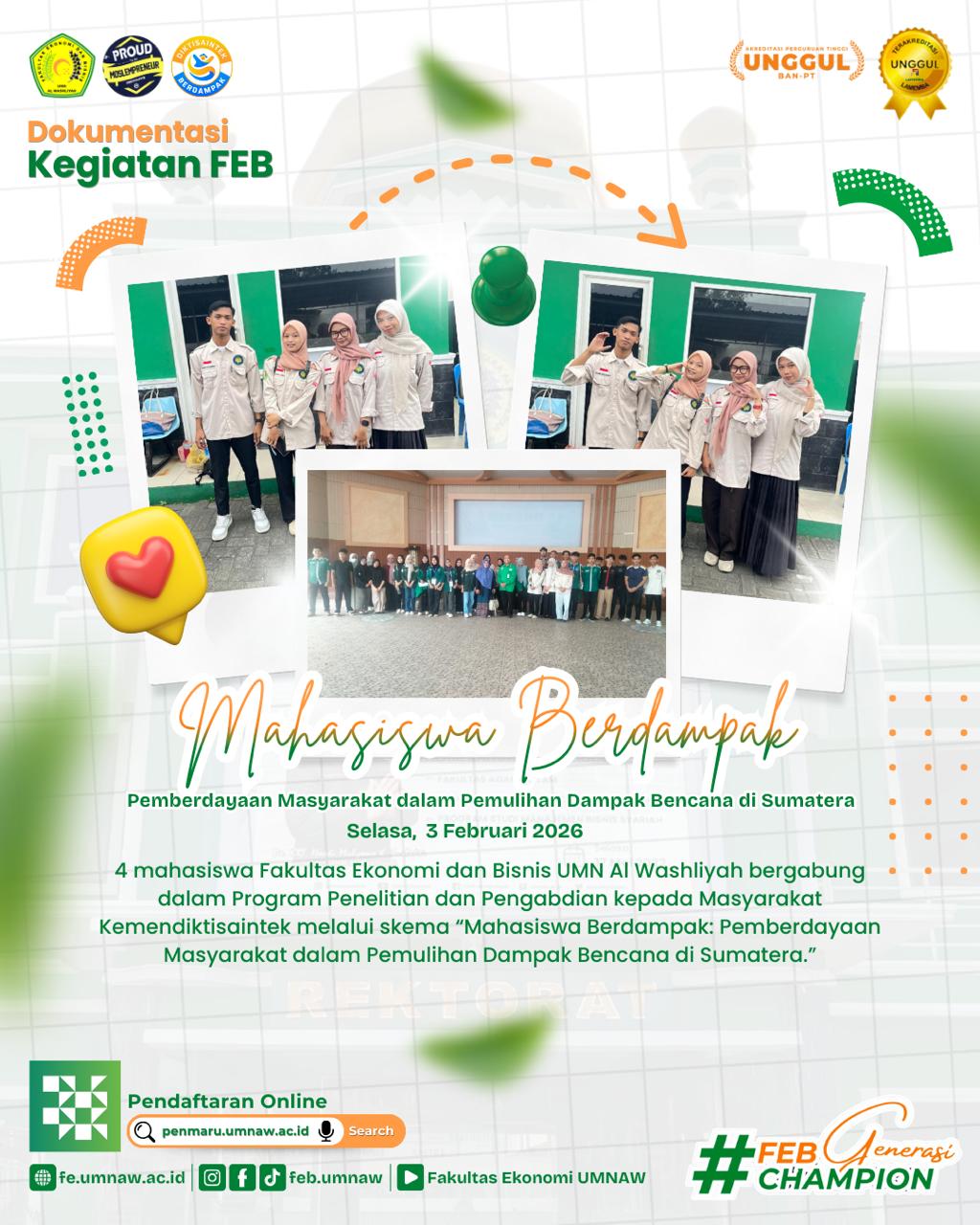 Kegiatan Mahasiswa Berdampak Fakultas Ekonomi dan Bisnis (FEB) merupakan salah satu bentuk implementasi nyata dari Tri Dharma Perguruan Tinggi yang...