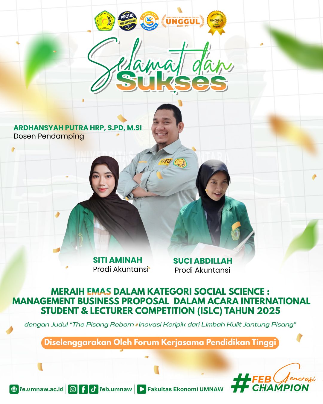 Fakultas Ekonomi dan Bisnis Universitas Muslim Nusantara Al-Washliyah dengan penuh rasa bangga dan apresiasi menyampaikan ucapan selamat dan sukses atas...